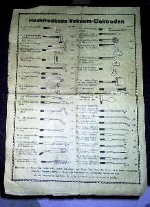 Koffer mit Stromversorgungsgerät und diversen Elektroden. Die Anzahl und Art der Elektroden lassen darauf schließen, daß sich der Koffer ursprünglich im Besitz eines Arztes befunden hat. (Aus einer Auktion)