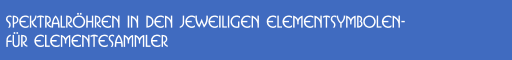 Diese spektralreinen Gase sind in den jeweiligen Elementsymbolen eingebracht. Die Röhren haben eine Abmessung von ca. 20 x 15 cm und können prinzipiell mit allen gewünschten Gasen gefüllt werden. Im Augenblick habe wir die Edelgase und Wasserstoff vorrätig.