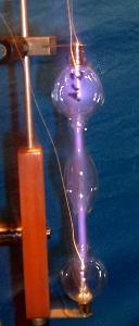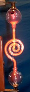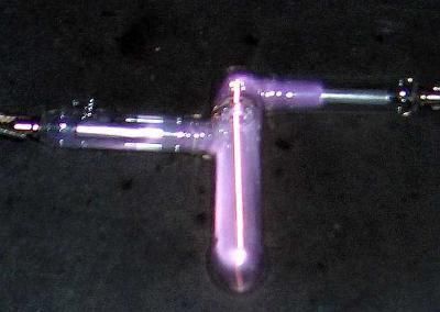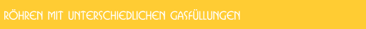 Ersetzt man jedoch die Luft durch ein Edelgas bei bestimmtem Druck, so lassen sich die Emissionen der jeweiligen Gase, ähnlich wie in den Spektralröhren beobachten. Natürlich sind solche Röhren nicht für die Spektralanalyse geeignet, da sie von der Glasform her nicht so exakt zu beobachten sind. Trotzdem ist es sehr interessant, diese Röhren in unterschiedlichen Farben aufleuchten zu sehen.