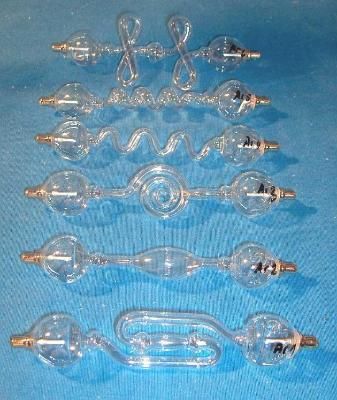 Diese Spektralröhren können mit den gleichen Gasen gefüllt werden wie die herkömmlichen Spektralröhren. Empfehlenswert sind sie immer dann, wenn die Leuchterscheinung der normalen Spektralröhre nicht sehr stark ist, wie z.B. bei Sauerstoff, Xenon oder Krypton.