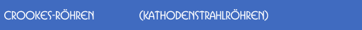 Unter der Bezeichnung "Crookes-Röhren" haben wir alle Kathodenstrahl-Röhren zusammen gefaßt, die mehr als die Geissler-Röhren verschiedenen wissenschaftlichen Zwecken dienten und auch z.T. heute noch dienen. Daher finden Sie hier auch Röhren von Röntgen, Goldstein, Cross u.a.