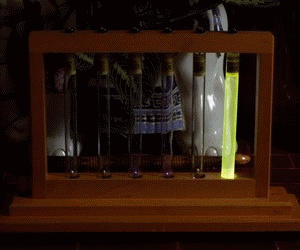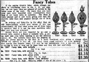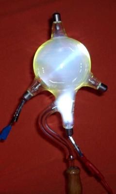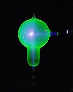 Was nicht jeder hat, ist eine Fluoreszenzröhre. In ihrem Innern sind Figuren oder Substanzen angebracht, die beim Bestrahlen mit Kathodenstrahlen in unterschiedliche Farben fluoreszieren. Manche können auch im abgedunkelten Raum ggf. phosphoreszieren.