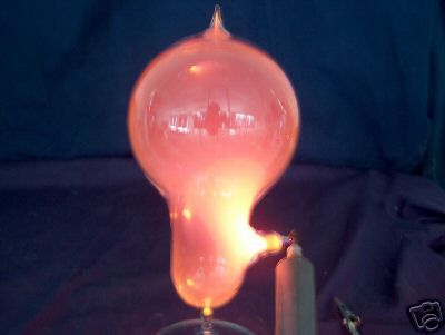 Und noch eine Neuerung, die es sonst nirgendwo zu kaufen gibt, die Phosphoreszenzlampe nach Puluj. Der ukrainische Forscher Ivan Puluj entwickelte diese Röhre, bei der ein Glimmerplättchen mit einem phosphoreszierenden Material bestrichen ist, um ca. 1900 herum.