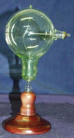 Wärmeröhren nach Crookes sind im Grunden genommen Röntgenröhren, da sie sehr hoch evakuiert werden. In ihrem Inneren befindet sich ein Plättchen aus Platin, das beim Auftreffen des Elektronenstrahl hellrot glüht. Der Versuch dient dem Nachweis, das Elektronen energiehaltig sind.
