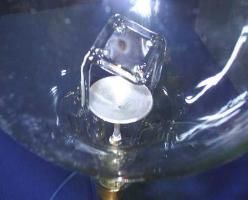 Diese Radiometerröhre mit einem Durchmesser von ca. 10 cm steht nur exemplarisch für eine ganze Reihe von Lichtmühlen. Sie können diese Lichtmühlen in allen Variationen erhalten. Bitte fragen Sie Ihr Wunschgerät direkt an!