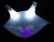 Die Oberfläche mancher Muschelarten besteht aus fluoreszierenden Calciumverbindungen. Diese leuchten im kurzwelligen Licht (> 254 nm) in einem prächtigen Blau auf. Im langwelligen UV-Licht (<340 nm) kann man die Leuchterscheinung nicht beobachten. Auch sieht man es den Muscheln nicht an, daß sie fluoreszierende Eigenschaften besitzt.