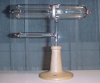 Eine ähnliche Röhre, aber ein Modell, wie es von der Firma Pressler in Cursdorf hergestellt wurde. Die Apparatur ist horizontal ausgerichtet- die Funktionsweise ist identisch.