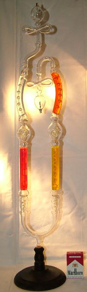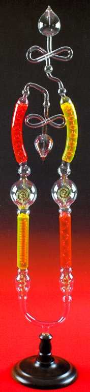Auch diese Röhre ist nach den Vorstellungen eines Sammlers entstanden. Beachten Sie die Filigranarbeit im Inneren der Röhre, die der Glasbläser hier verrichten muß.