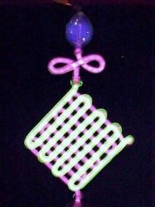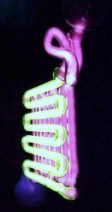 Deutlich sieht man bei dieser Röhre, daß sie tatsächlich mit 4 fluoreszierenden Flüssigkeiten befüllt ist und daß in jeder Röhre ein anderes Glasmuster verwendet wurde.