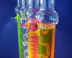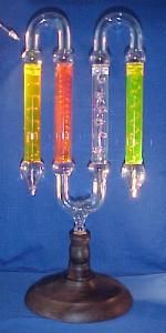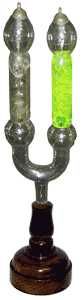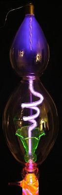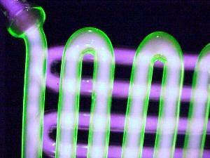 Die hier abgebildete U-Röhre mit fluoreszierenden Flüssigkeiten stammt von der Homepage von John Jenkins, der mir freundlicherweise erlaubt hat, diese zu benutzen. Seine Seiten finden Sie unter www.sparkmuseum.com . Many thanks, John!