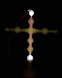 Und dies ist unser Exemplar- einmal ohne Hochspannung und dann in Betrieb mit 10 kV.