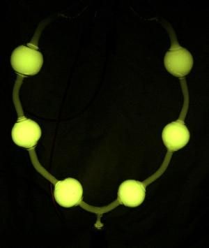 Hier allerdings die Ausführung mit Uranglaskugeln. Diese leuchten im Dunkeln mit grüner Fluoreszenz.