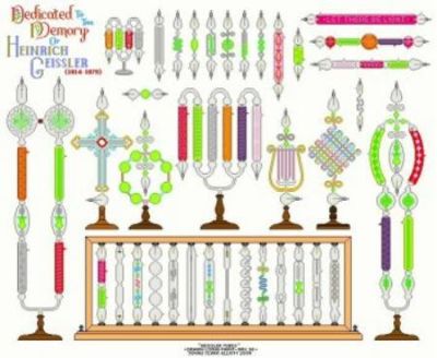 Auf diesem Plakat finden sich viele Geissler-Röhren, die z.T. vor über 100 Jahren von phantasievollen Glasbläsern geschaffen wurden. Einige davon haben allerdings nie existiert, sondern entstammen der Phantasie unseres Sammlerfreundes Jonas. Wer weiß, vielleicht wird eines Tages die eine oder andere Röhre davon zum Leben erweckt. Genauso war der Weg der alten Röhren.... erst ein bißchen Phantasie, dann eine Zeichnung und dann....
