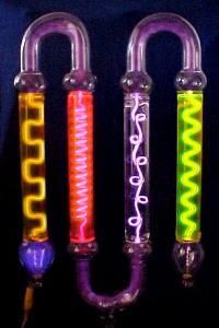 Diese Röhren sind mit verschieden leuchtenden Gasen, bzw. Flüssigkeiten gefüllt. Es existiert keine leuitende Verbindung zwischen den einzelnen Kammern; die Stromleitung erfolgt kapazitiv.
