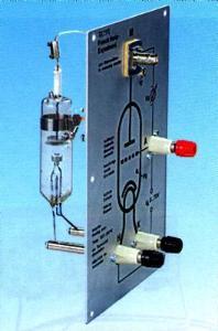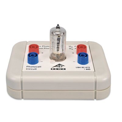 Hier stehen 2 Varianten zur Auswahl- die Vakuumfotozelle und die gasgefüllte Fotozelle. Beide dienen dem Nachweis des lichtelektrischen Effekts (Fotoeffekt). Die gasgefüllte Fotozelle ist wesentlich lichtempfindlicher, sodaß der Effekt hier bereits mit relativ unempfindlichen Meßgeräten nachgewiesen werden kann. Beide lassen sich in die gleiche Schaltung einsetzen.