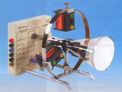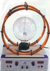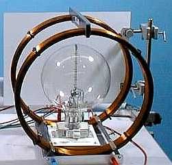 Das Fadenstrahlrohr dient der quantitativen Bestimmung des Quotienten e / m (der spezifischen Elektronenladung) im magnetischen Feld eines homogenen Helmholtzspulenpaares. Hierbei werden Elektronen, je nach äußerem Einfluß auf eine kreisförmige Bahn gezwungen.