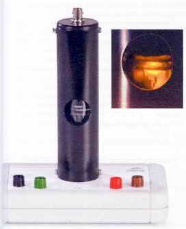 Für diese Röhre ist eine Vakuumpumpe unerläßlich. Durch den variablen Elektrodenabstand lassen sich eine ganze Reihe von Gesetzmäßigkeiten der elektrischen Gasentladung nachweisen.