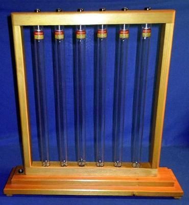 Dieses Gerät demonstriert in beeindruckender Weise, wie sich unterschiedliche Druckverhältnisse im Inneren von Gasentladungsröhren auf die Entladungsarten auswirken. Mit der Vakuumskala nach Cross lassen sich insgesamt 6 verschiedene Erscheinungen registrieren. Das Gestell ist mittlerweile aus Kunststoff. Wir haben allerdings noch einige Originalgeräte mit robustem Holzgestell der Firma Pressler in Cursdorf vorrätig.