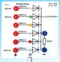 Eine wesentlich elegantere Lösung bietet die Versuchsanordnung mit den Leuchtdioden auf Sockelplatte. Die LEDs sind in hohem Maße spektralrein und daher besonders gut geeignet, das Plancksche Wirkungsquantum bei verschiedenen Farben zu ermitteln. Eine verblüffend einfache und preisgünstige Lösung.