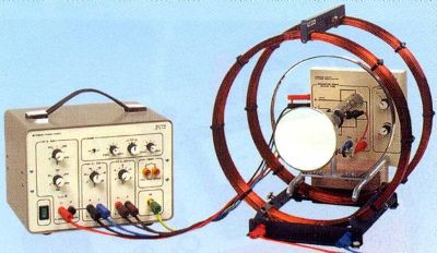Fadenstrahlrohr mit großen Helmholtzspulen zur Bestimmung des Quotienten e/m